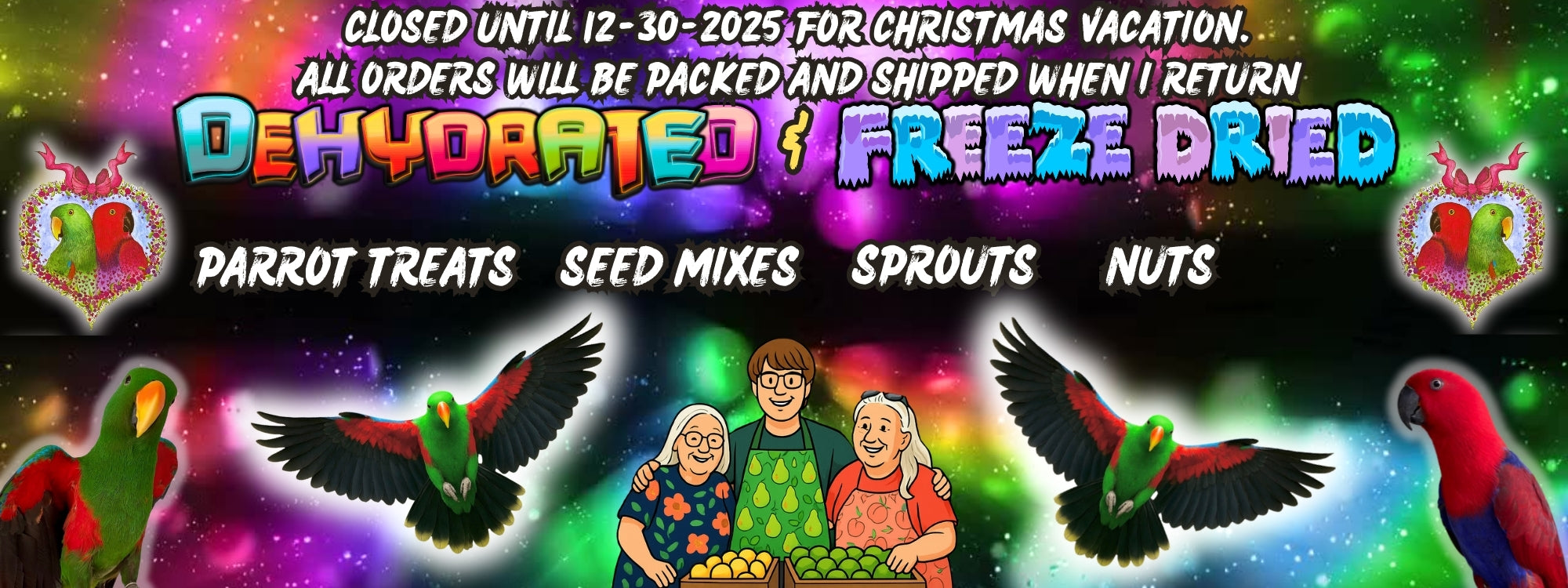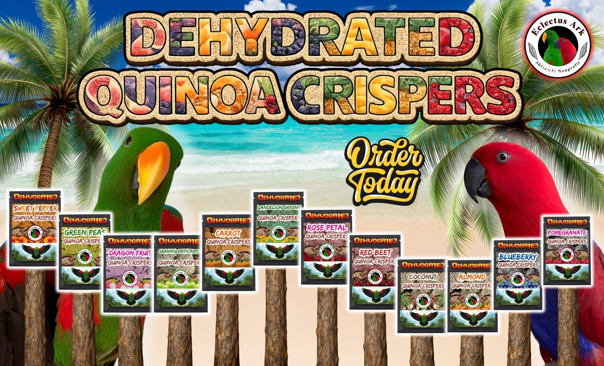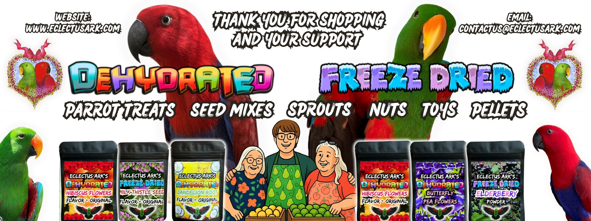 At Eclectus Ark, every product is handcrafted with love right here at our facility. From washing and slicing to dehydrating and freeze-drying, we personally prepare every batch to ensure only the highest-quality food reaches your feathered family.