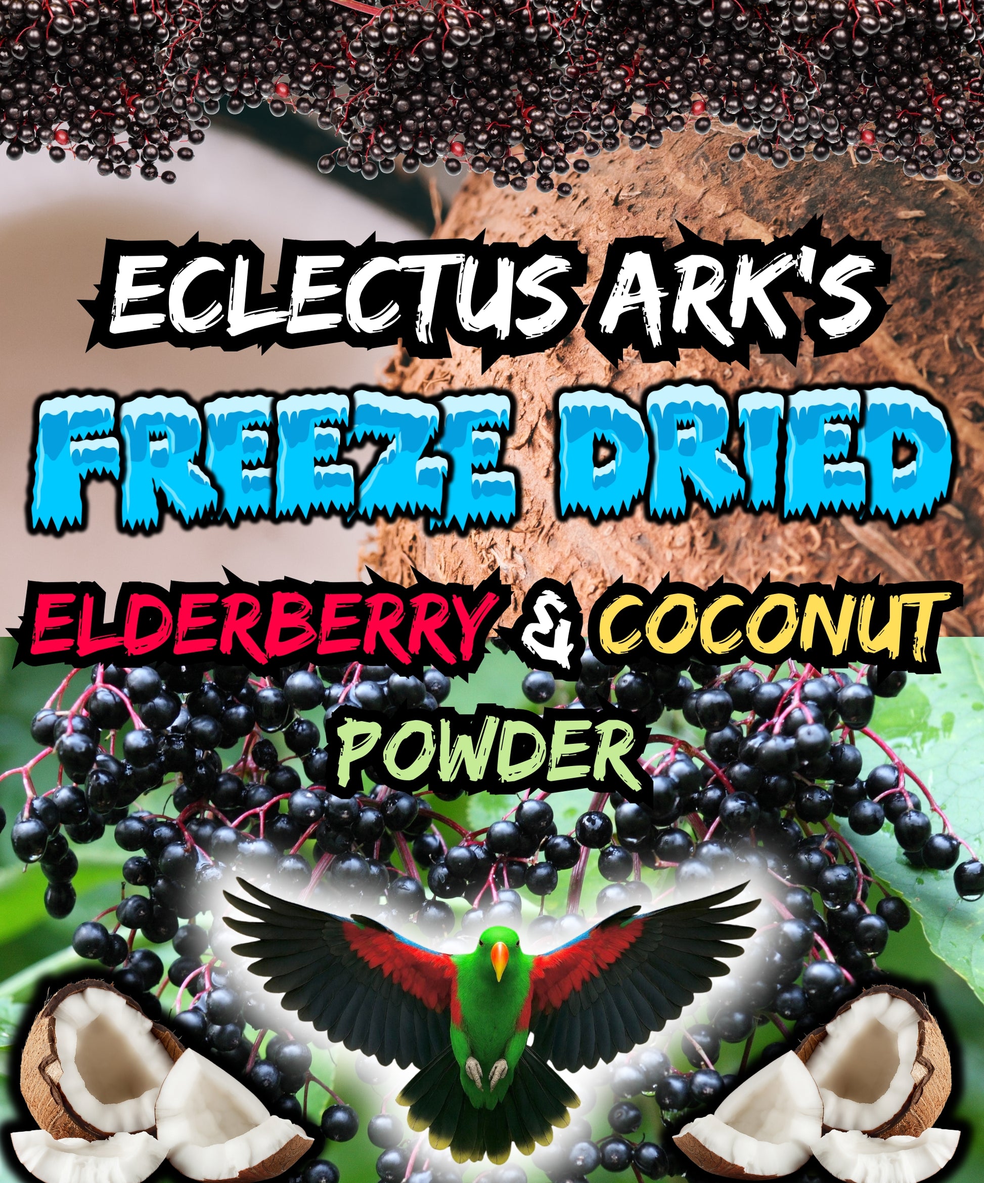 Bring a tropical twist to your parrot’s bowl with Elderberry & Coconut Powder from Eclectus Ark’s Seasoning Cabinet! 🌿