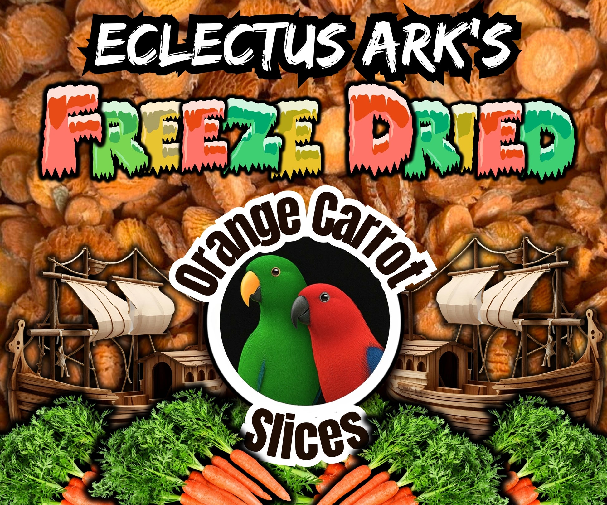 Our Freeze Dried Carrot Slices are a crunchy, lightweight, and mess-free snack your parrot will love! Handmade in small batches at Eclectus Ark, these naturally sweet carrot slices are a perfect healthy treat or training reward for all parrot species.