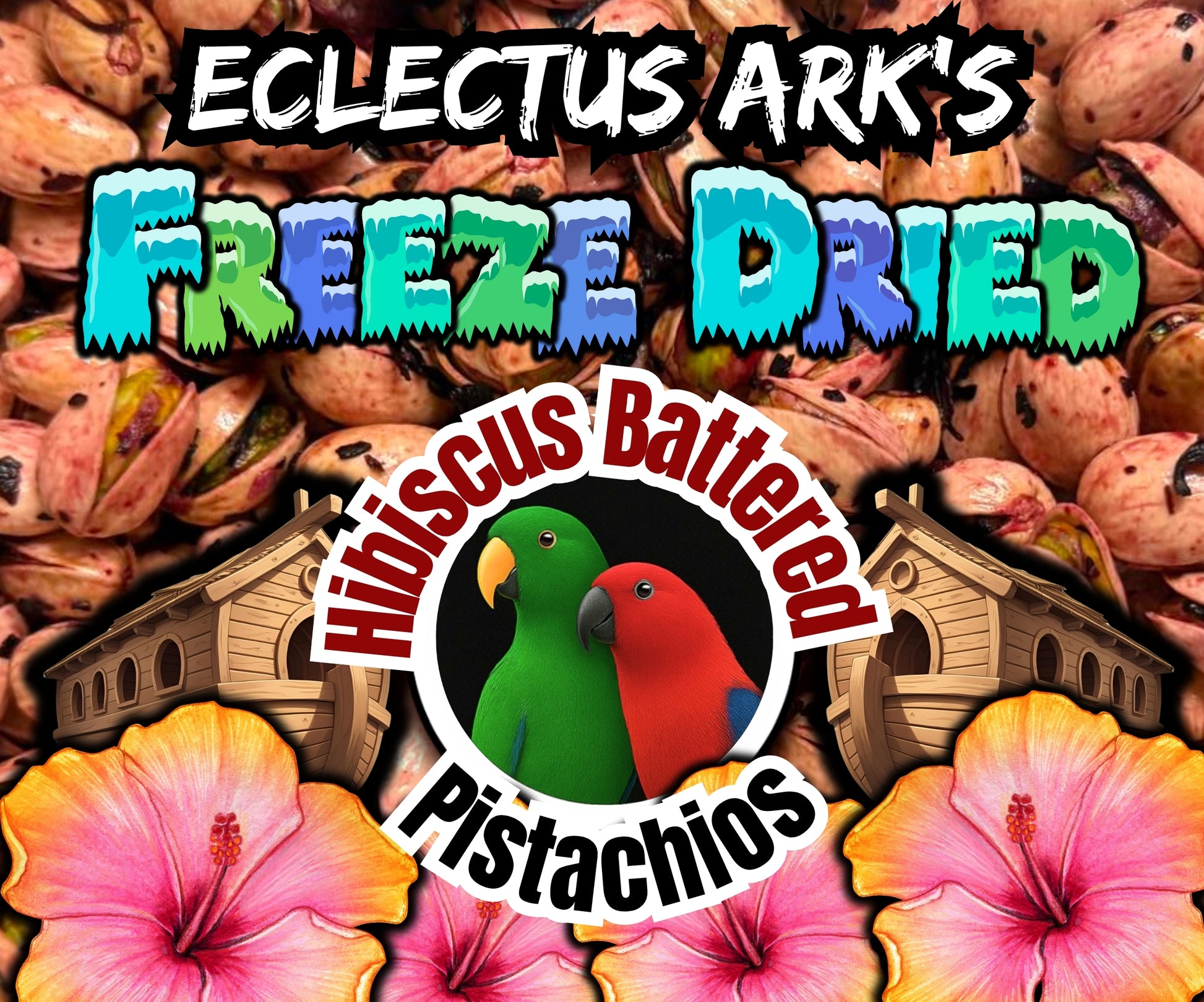 We start with premium, washed pistachios, soak them in vibrant hibiscus flower puree, and freeze dry them to perfection. The result? A naturally colorful, flavorful, and crunchy treat your parrot will love.