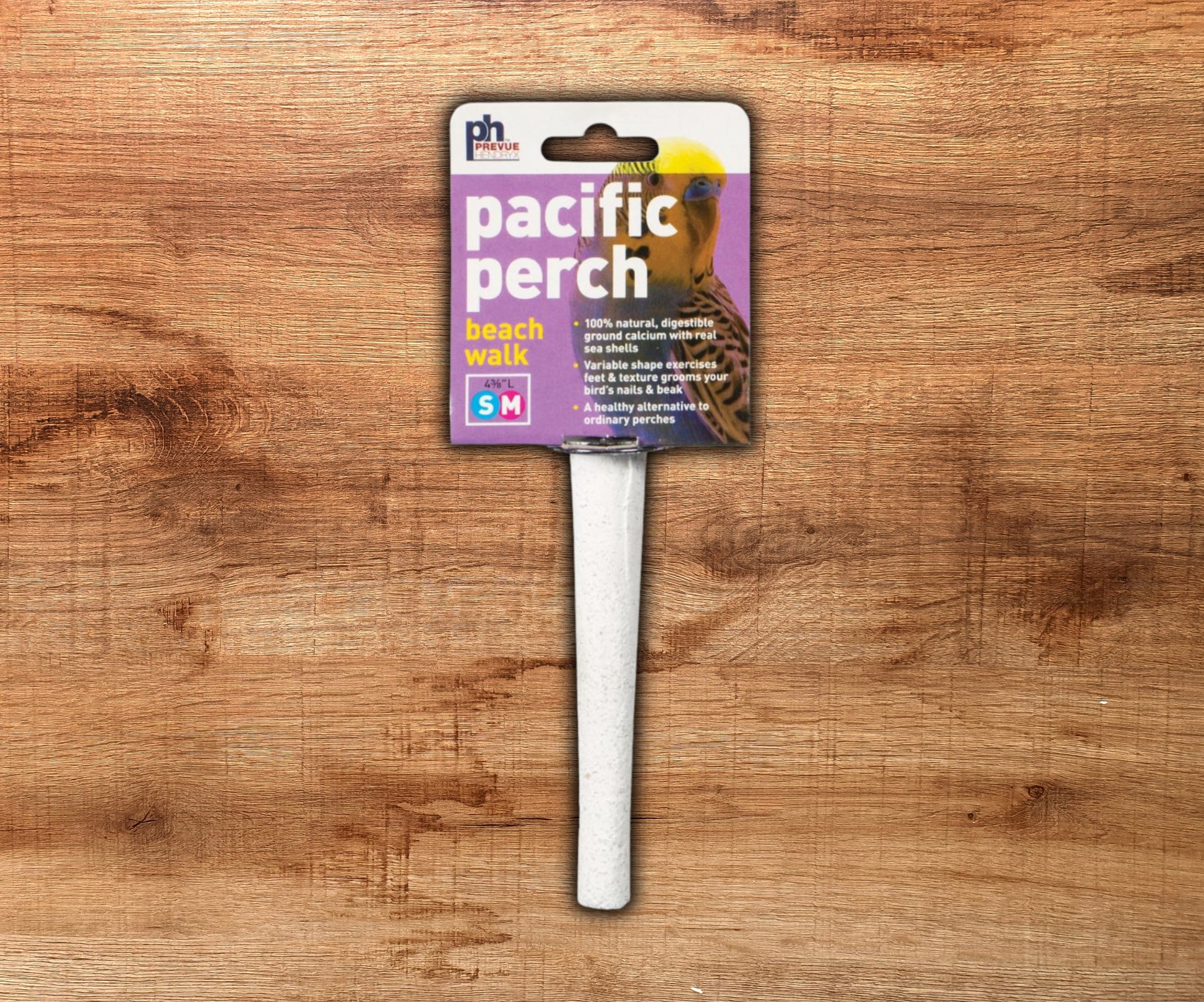 Bring the beach to your bird’s cage with the Prevue Beach Walk Grooming Perch! Made from 100% natural ground seashells, this perch not only provides a secure and comfortable grip but also supplies calcium as your bird chews. The tapered shape encourages natural foot exercise, while the tough seashell coating helps keep beaks and nails trimmed. A colorful, functional perch that supports your bird’s health and enrichment!