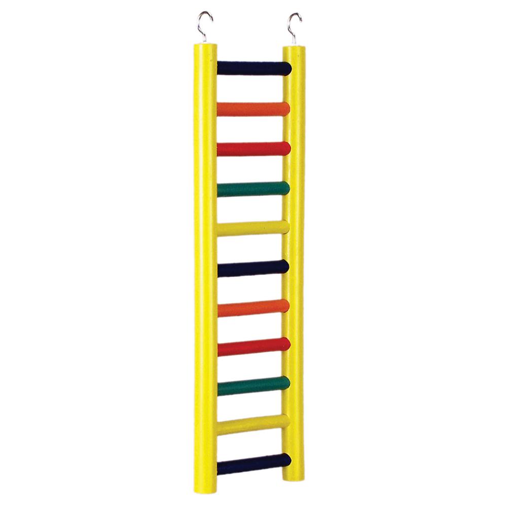 Brighten up your bird’s cage with the Prevue Carpenter Creations 4-Rung Wood Ladder! Crafted from solid pine wood and finished with 100% safe FD&C-approved colors, this colorful ladder provides both fun and function. Sturdy ½" diameter rails and ⅜" rungs make it durable for climbing, while metal hooks allow for secure and easy attachment. A playful way to encourage exercise, enrichment, and climbing for your bird.