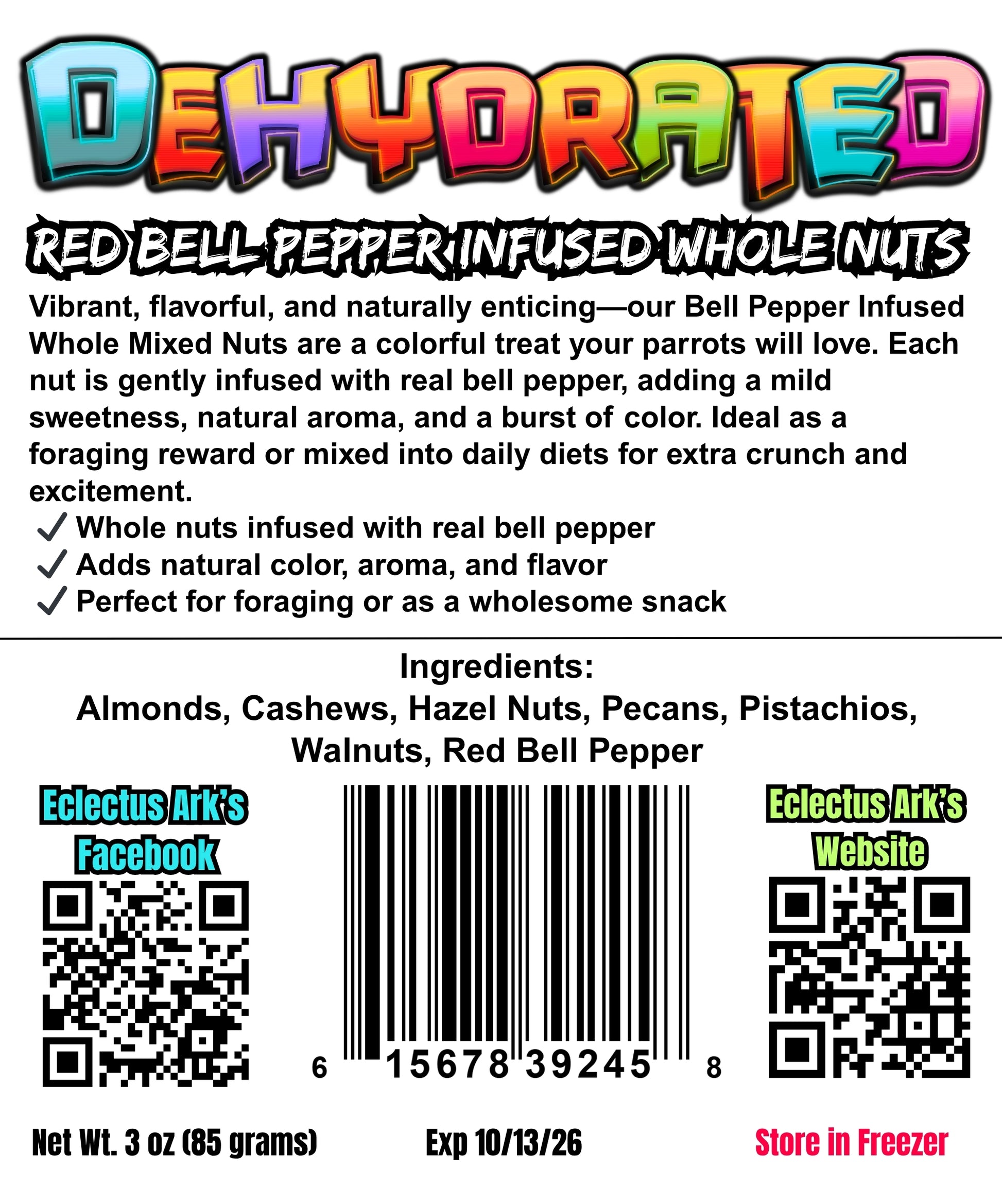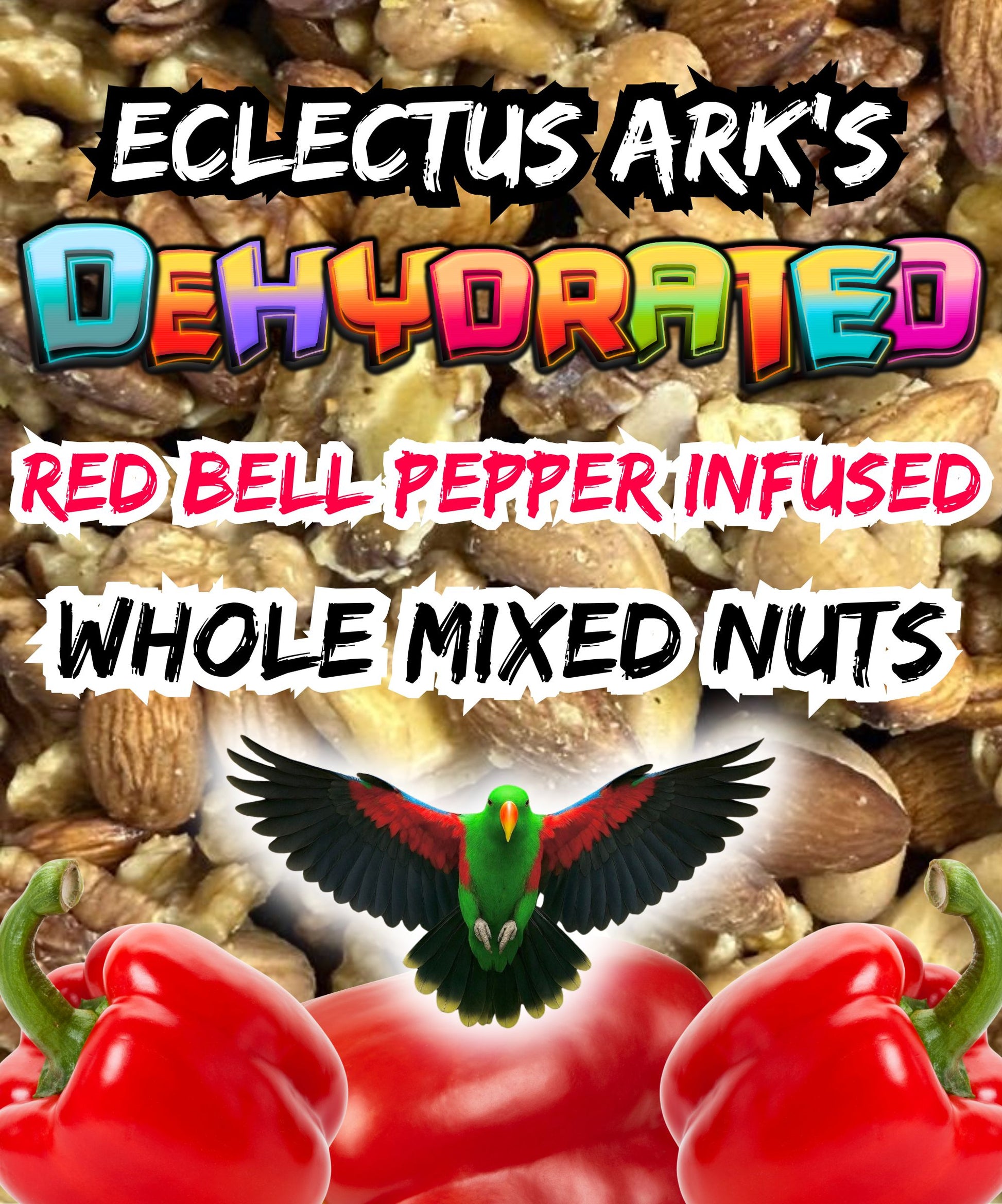 Bright, vibrant, and naturally enticing — our Red Bell Pepper Infused Whole Mixed Nuts are a flavorful treat your parrots will adore. Each nut is gently infused with real red bell peppers, creating a naturally bright red hue and subtle sweetness parrots find irresistible. This handcrafted blend provides a satisfying crunch and encourages foraging, enrichment, and natural feeding behaviors.
