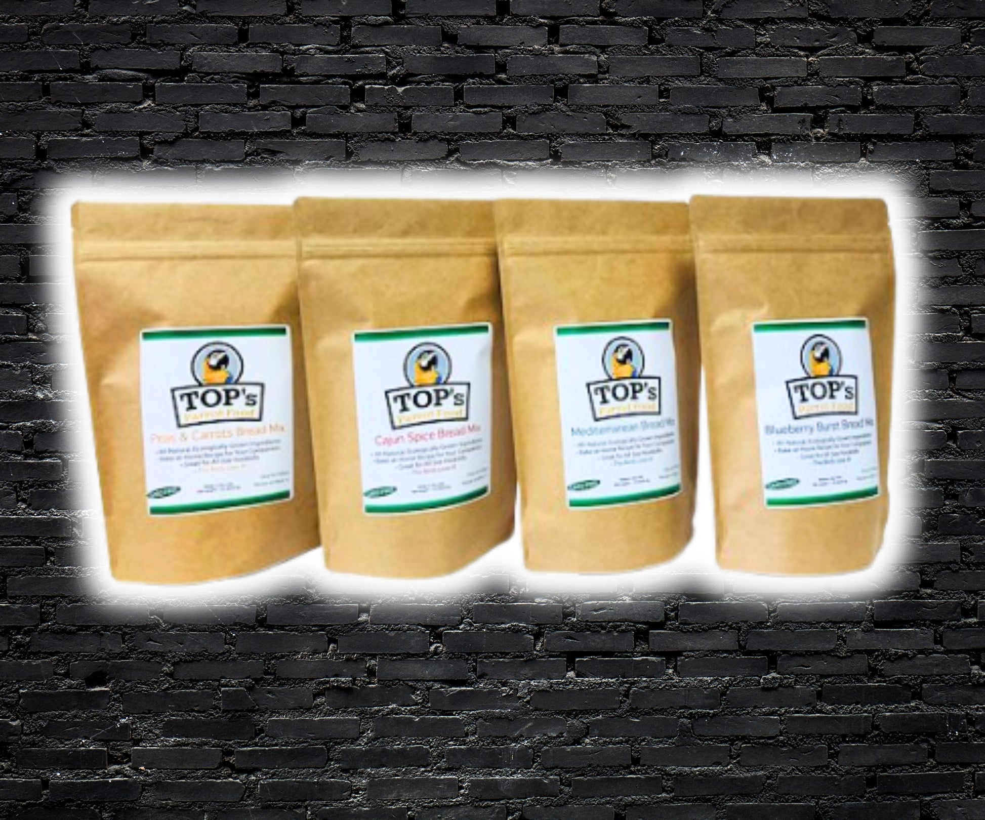 You asked for it, and now it's here. TOP's Parrot Food is happy to introduce our new Premium Birdie Bread Mix.